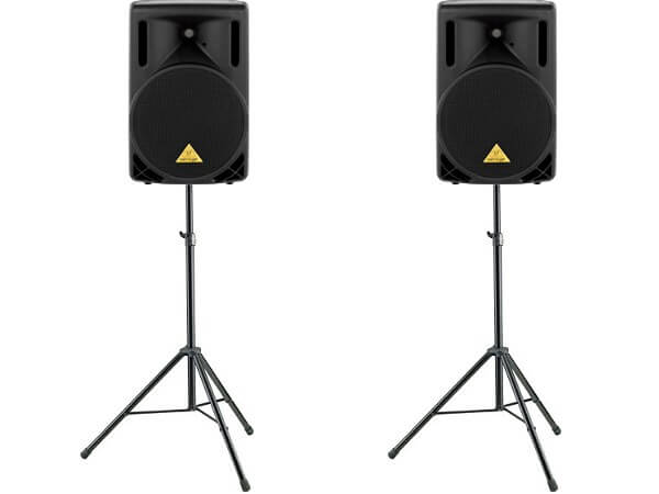Da die Verstärker bereits in die Boxen eingebaut sind, gestaltet sich der Aufbau dieser Partyanlage sehr einfach.