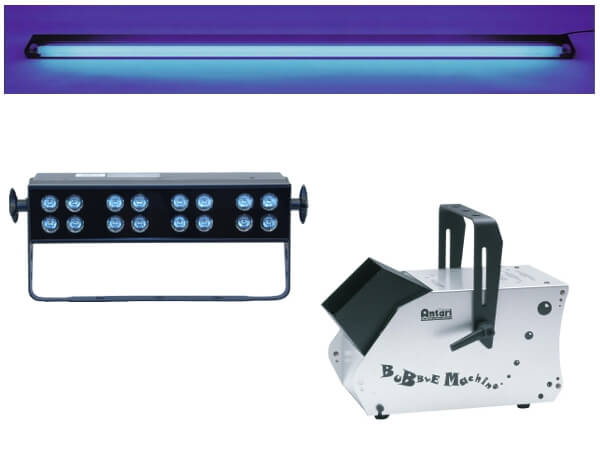 Mieten Sie dieses Schwarzlicht-Set im Raum Aschaffenburg, Lohr, Main-Spessart für eine gelungene UV-Party, Schwarzlichtparty oder Schwarz-Weiß-Party.