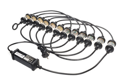 Die Stroboskopkette kann wie eine herkömmliche Lichterkette aufgehängt und an einer Steckdose angeschlossen werden.
